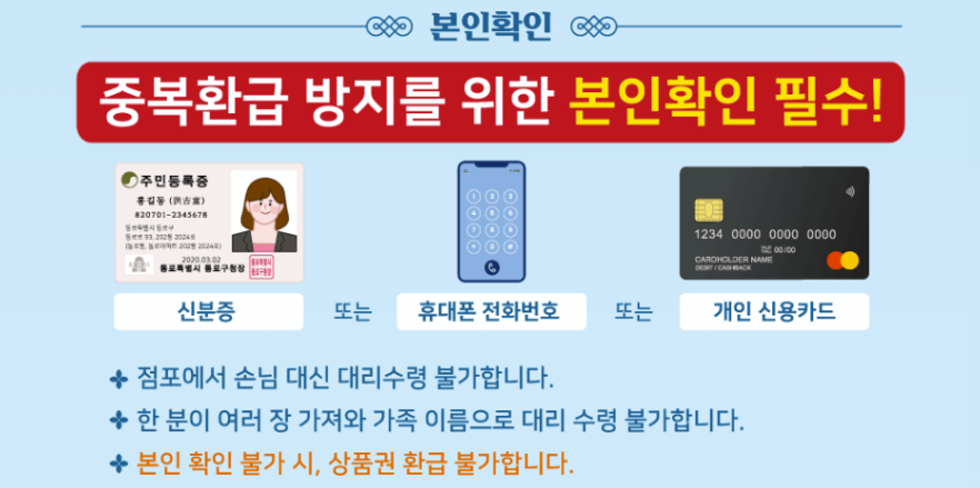 *(주의) 점포가 손님 대신 대리수령, 가족이름으로 여러장 대리수령, 본인확인 불가시 환급 불가